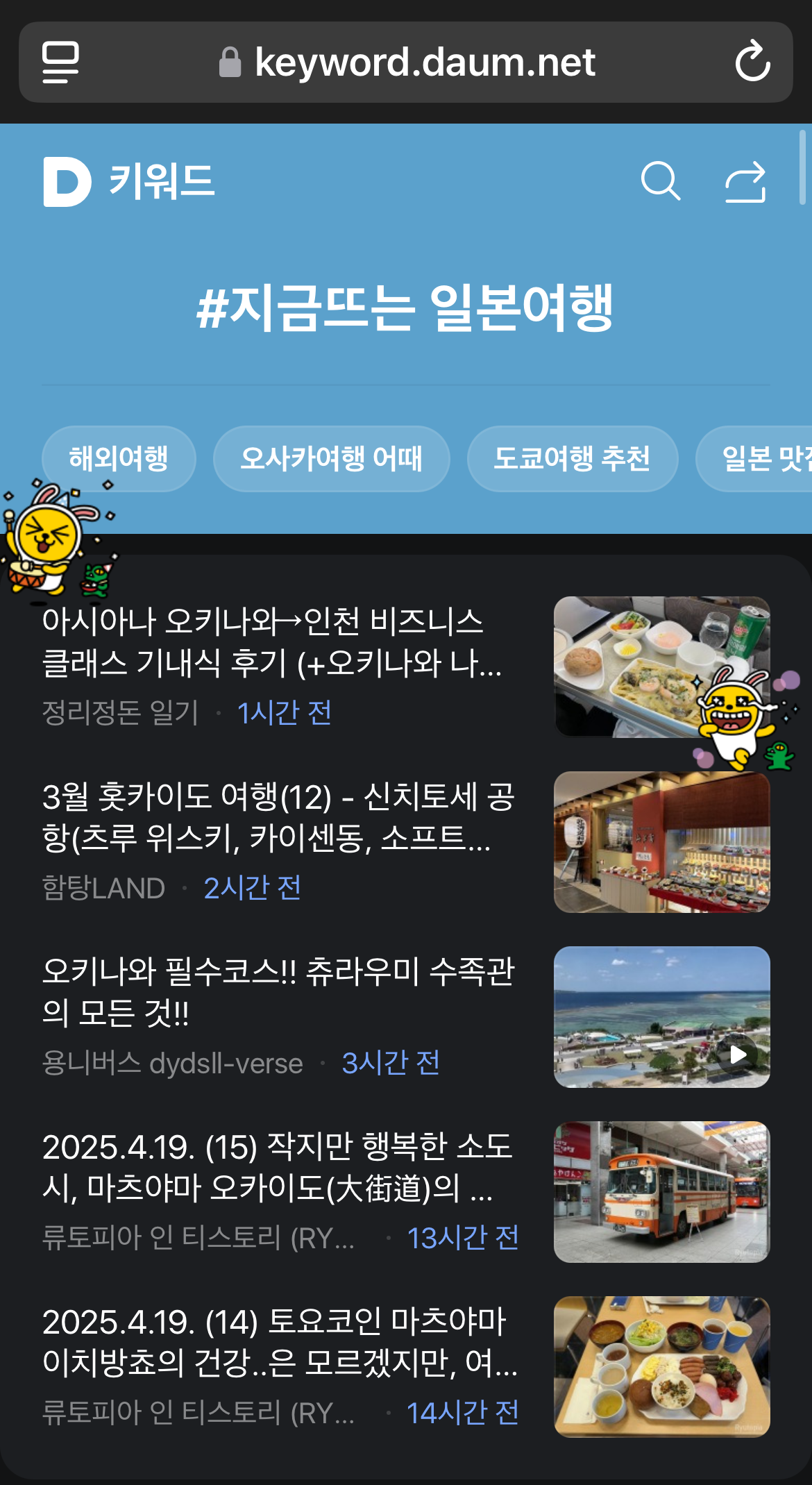 기내 유아식 후기에 이어 다음 Daum 메인에 연달아 올랐습니다.